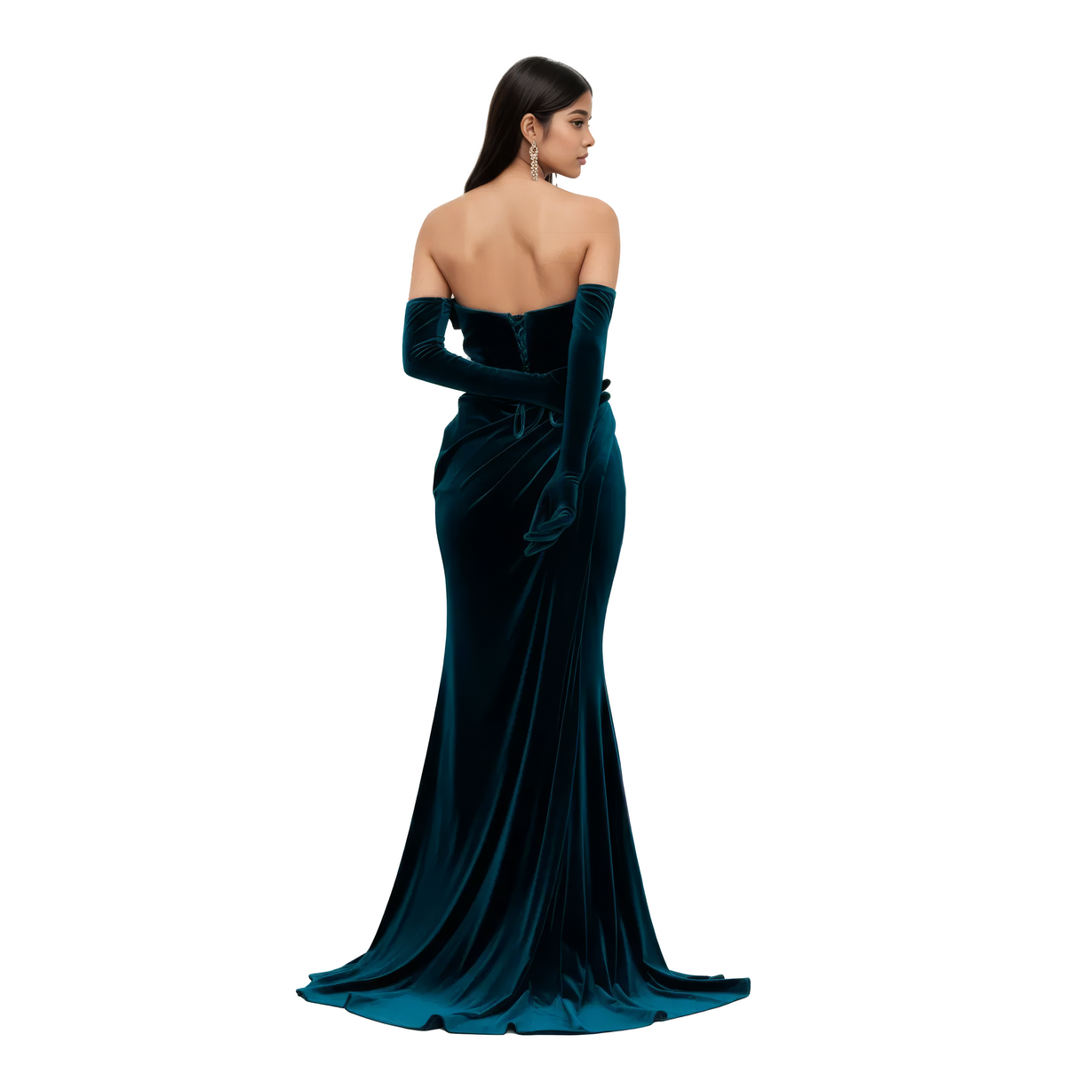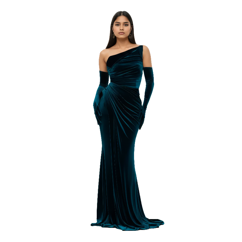 Off Shoulder Maxi Velvet Mermaid Dress - Petrol Blue / XS
