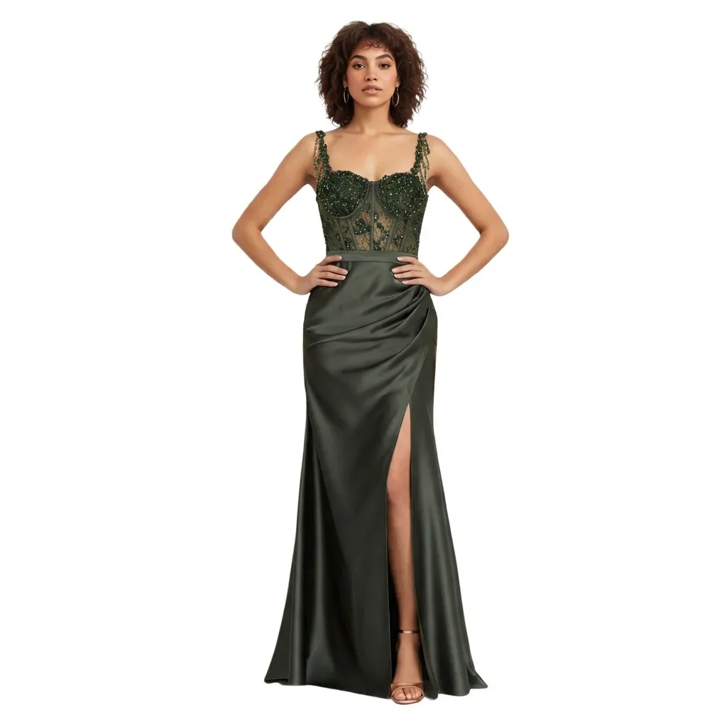 Sleeveless Maxi Satin Mermaid Dress - S / Khaki Green