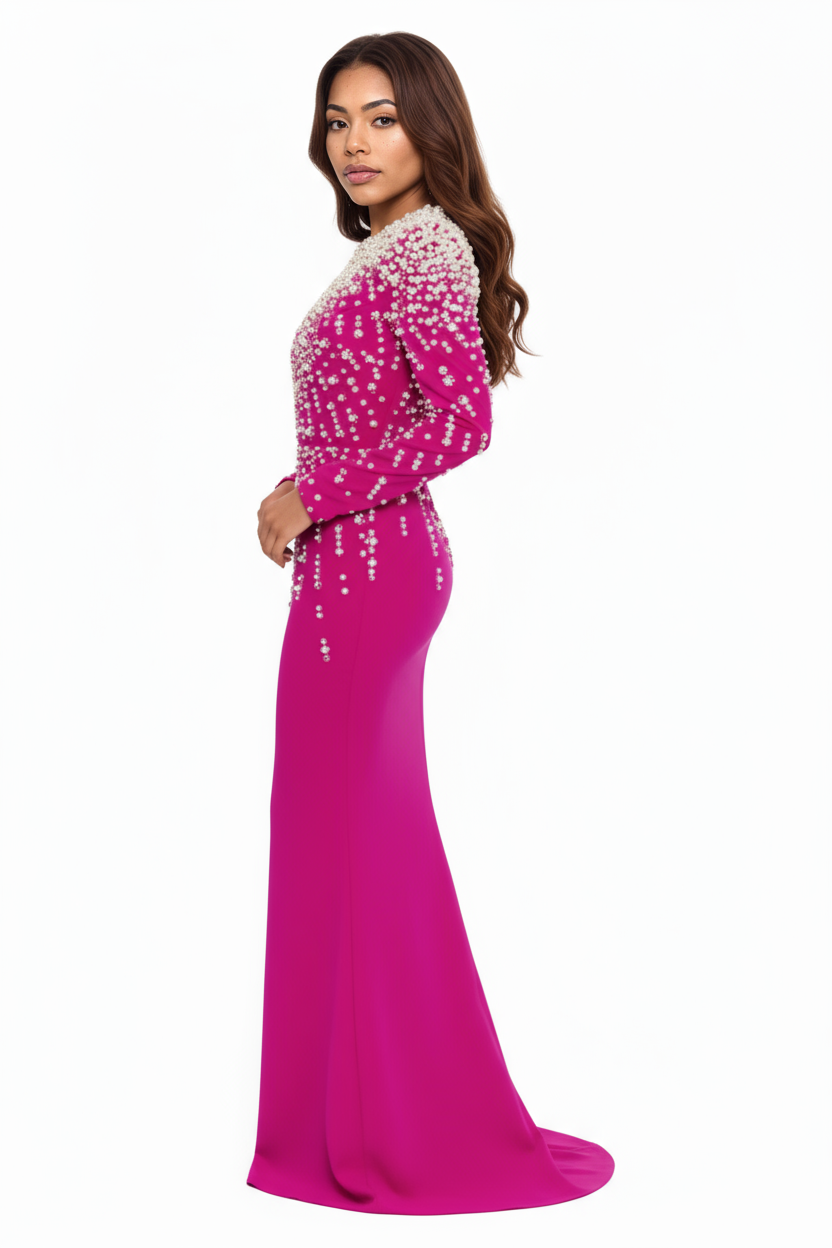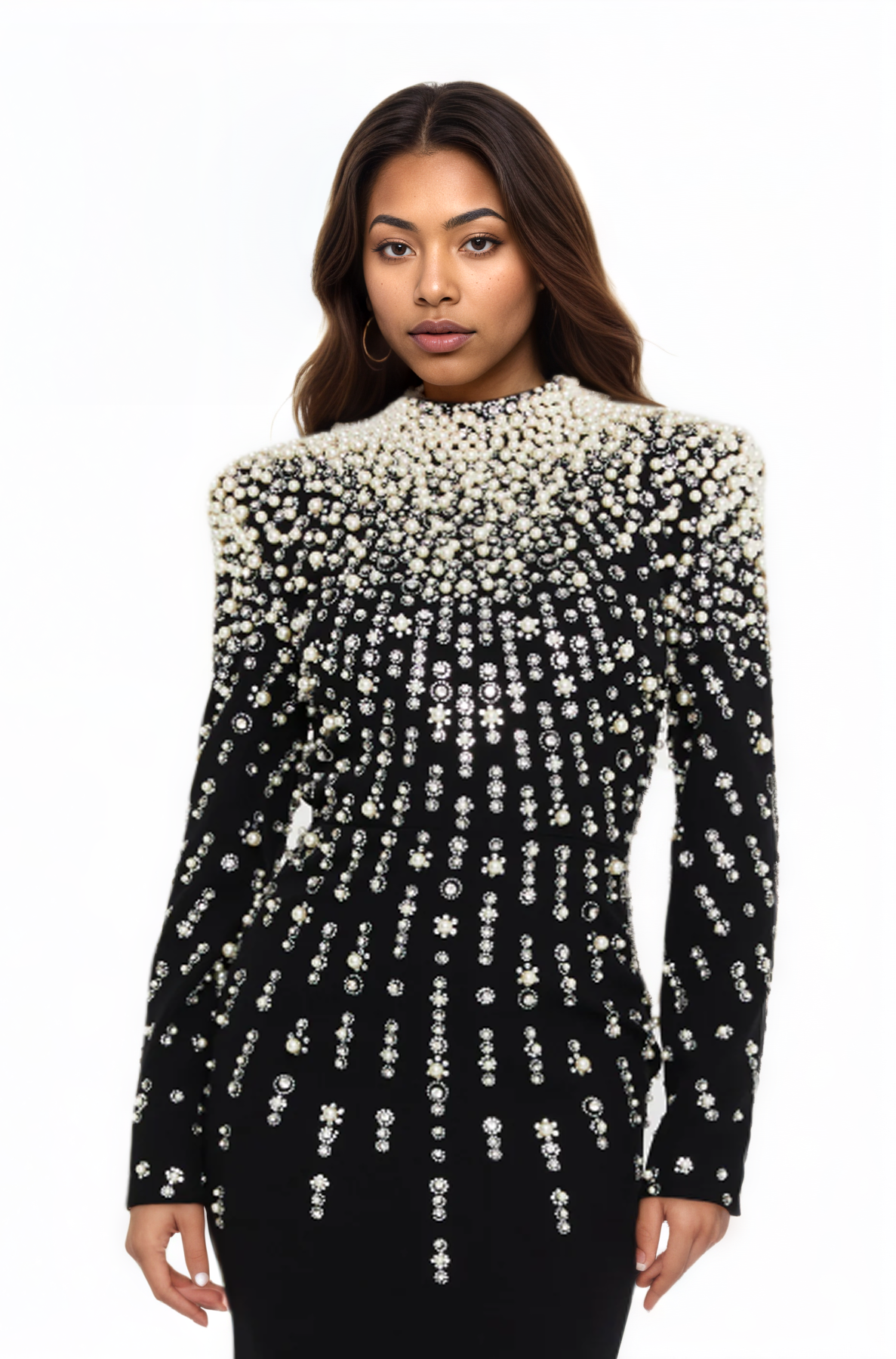 Long Sleeve Maxi Viscose Mermaid Dress - Black / XS