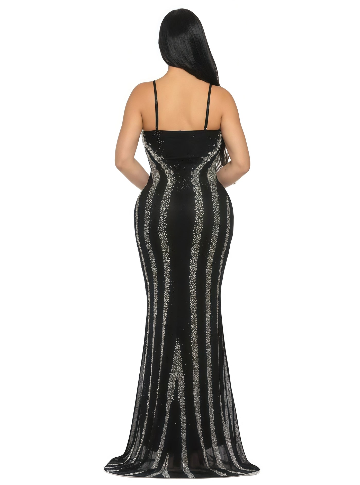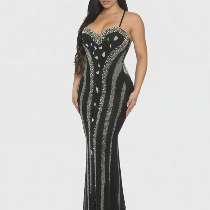 Mirror Rhinestone Embellished Maxi Dress - Black / S