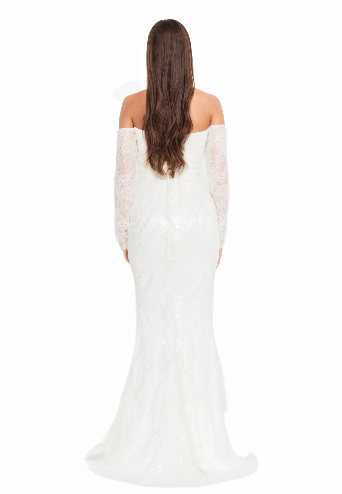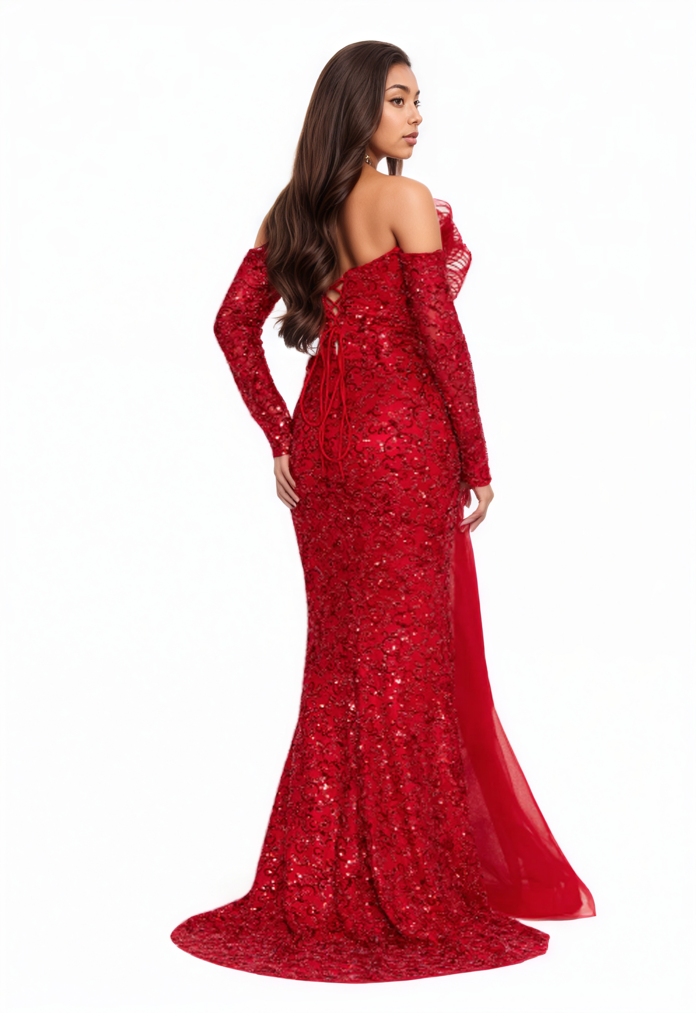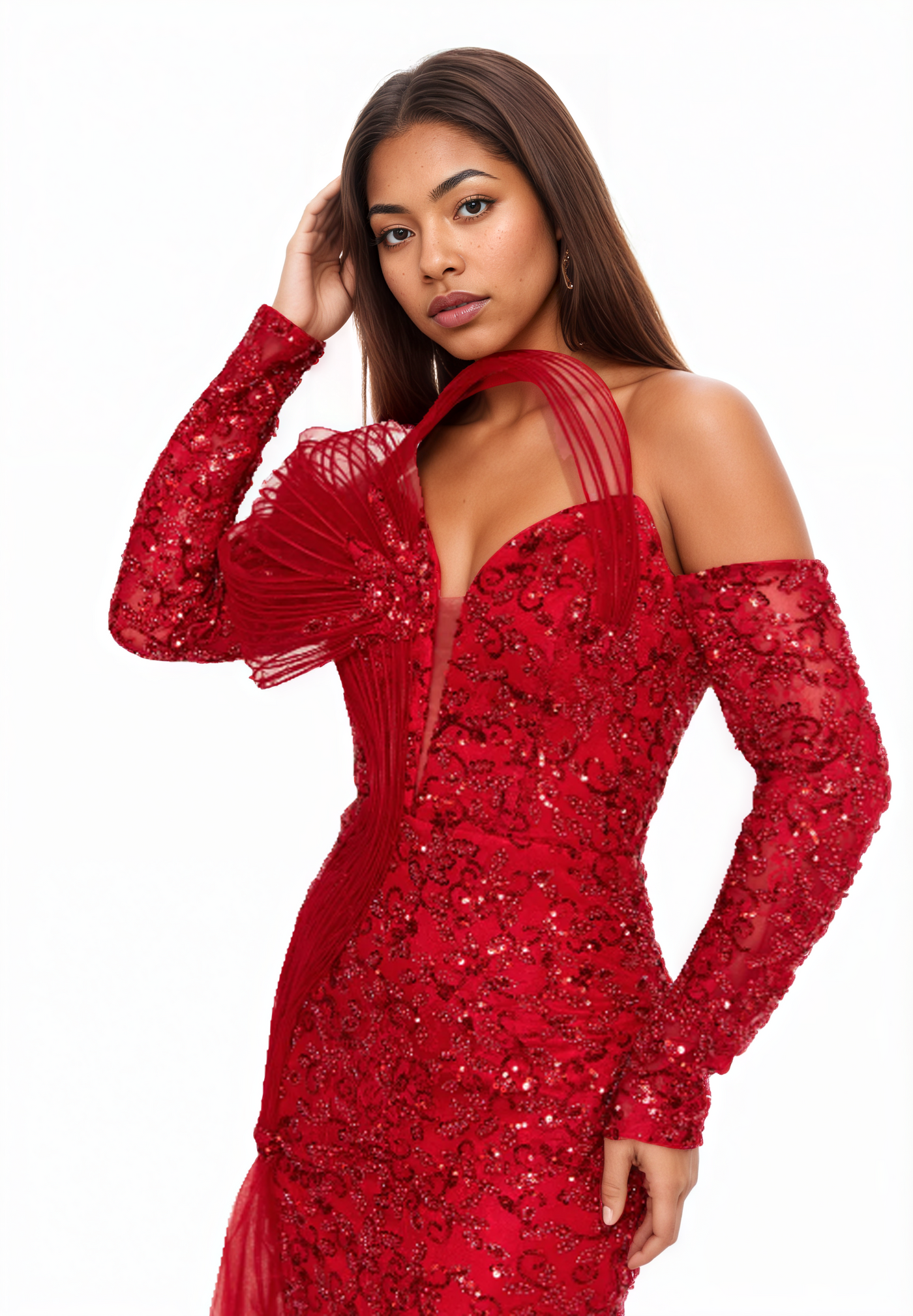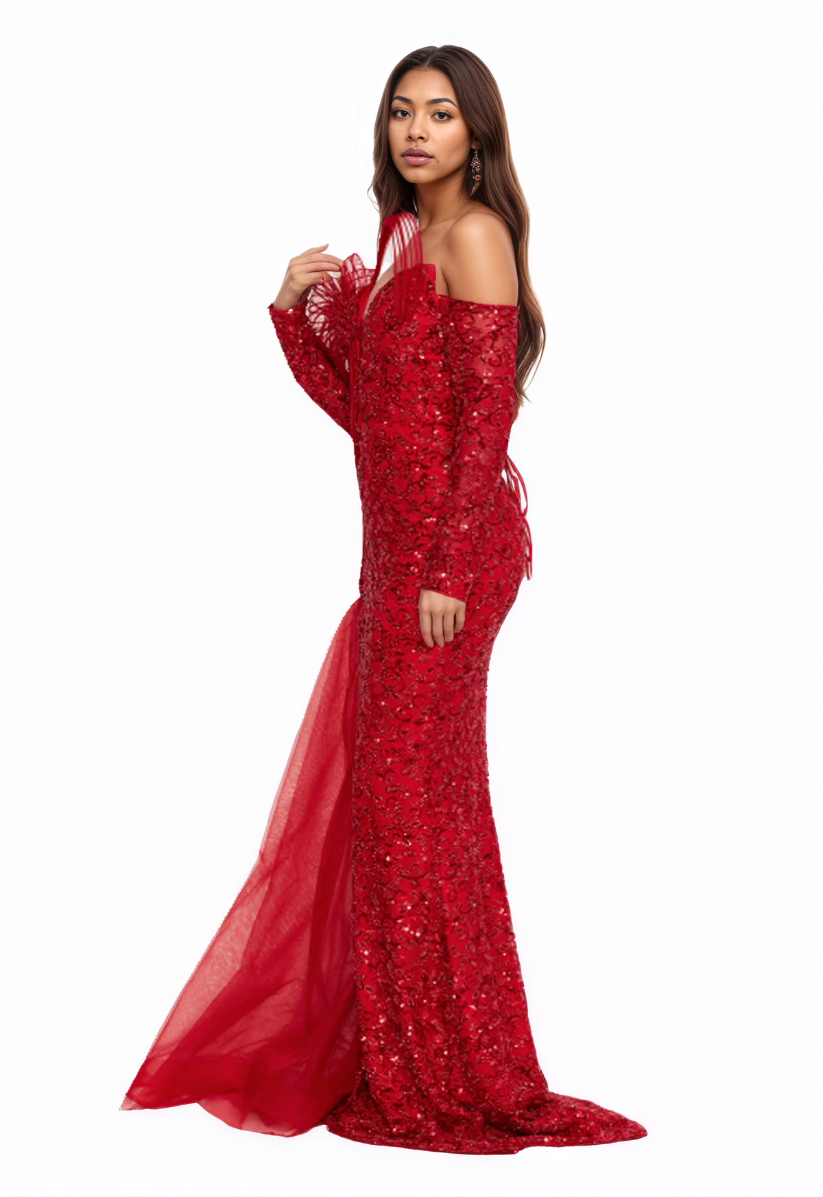 Off Shoulder Maxi Tulle Mermaid Dress - Red / XS