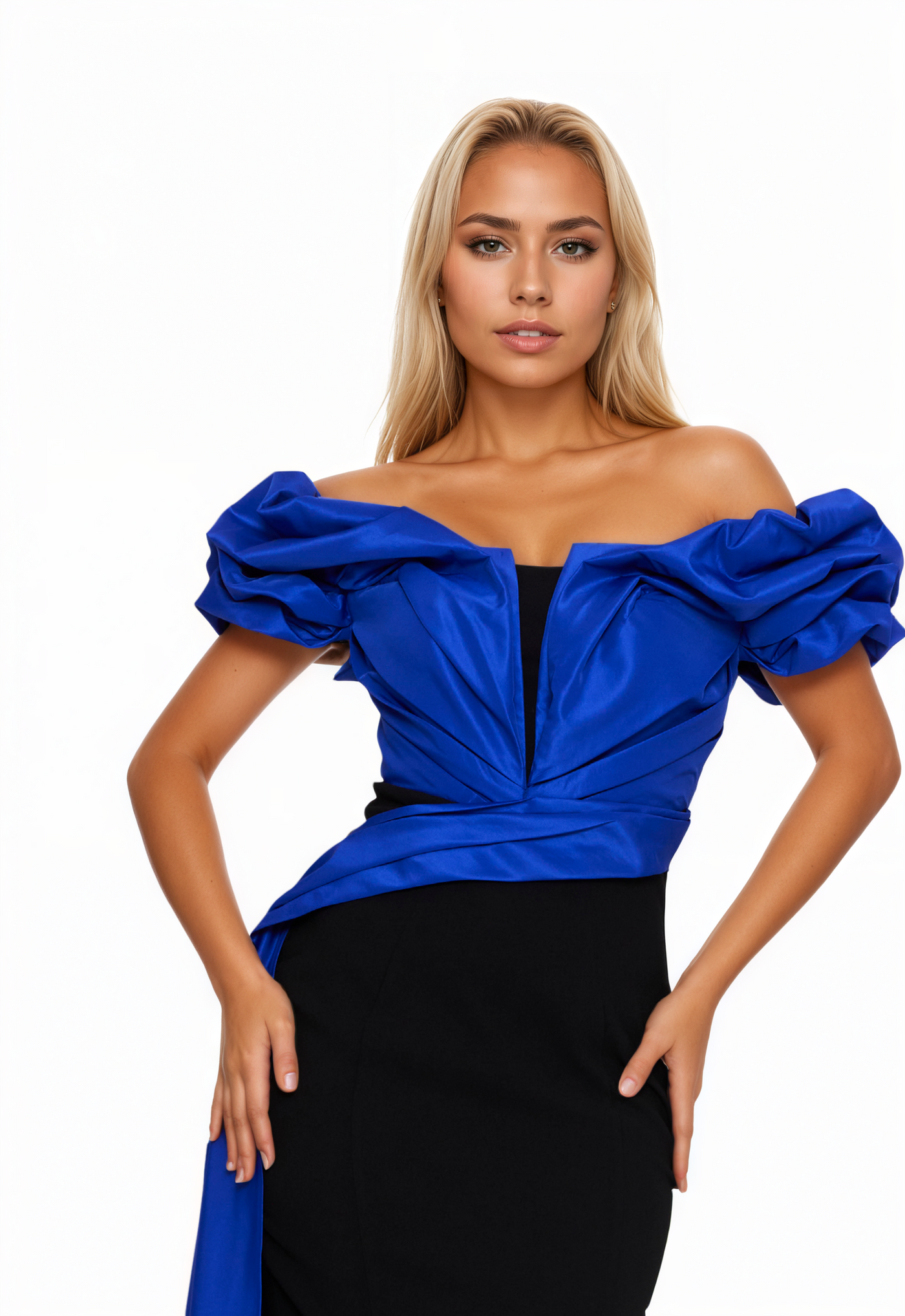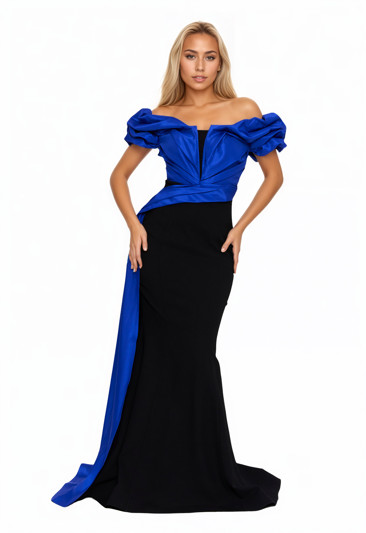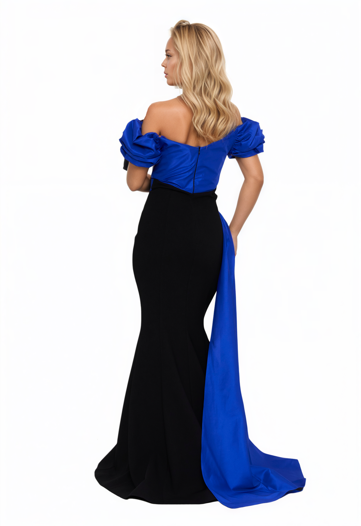 Off Shoulder Maxi Viscose Mermaid Dress - Royal Blue / XS