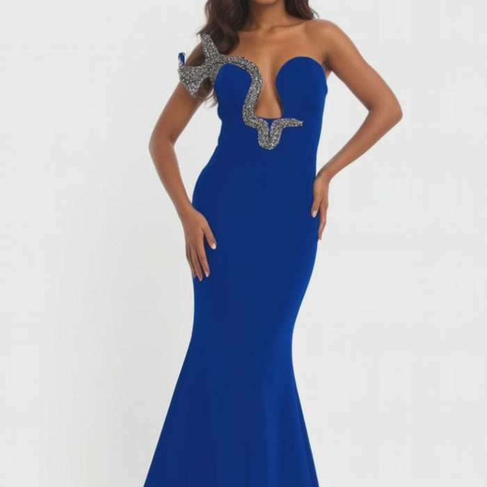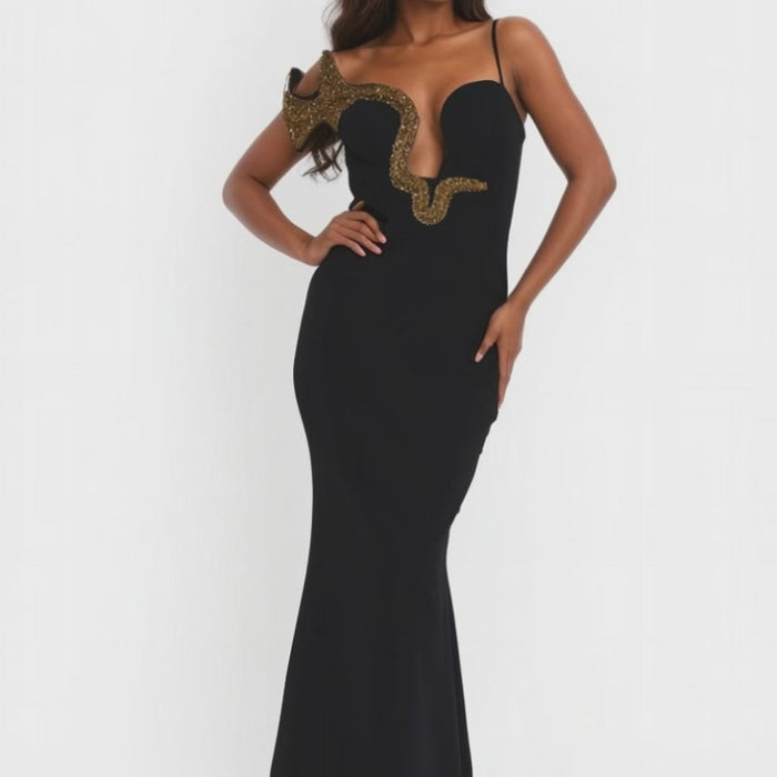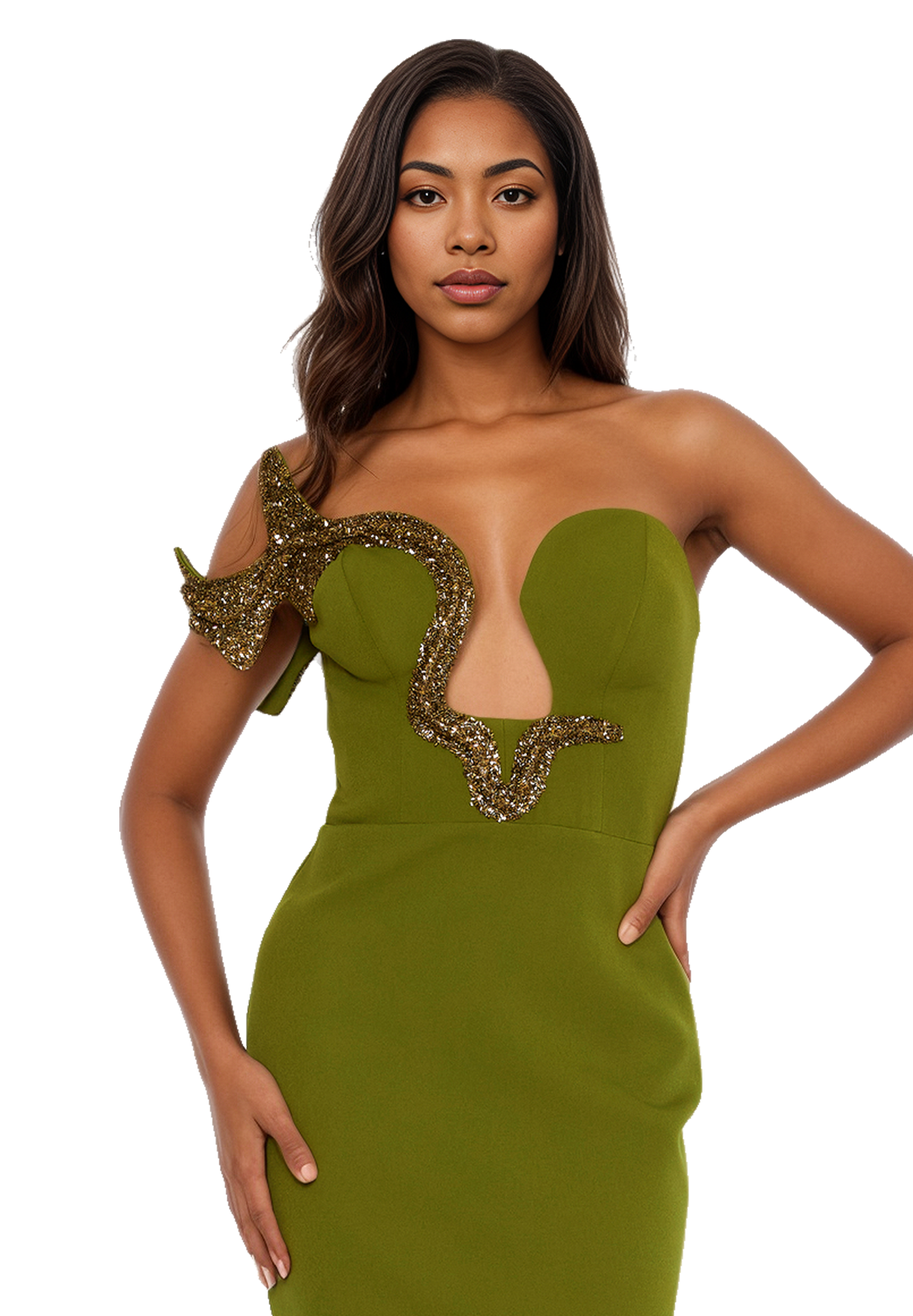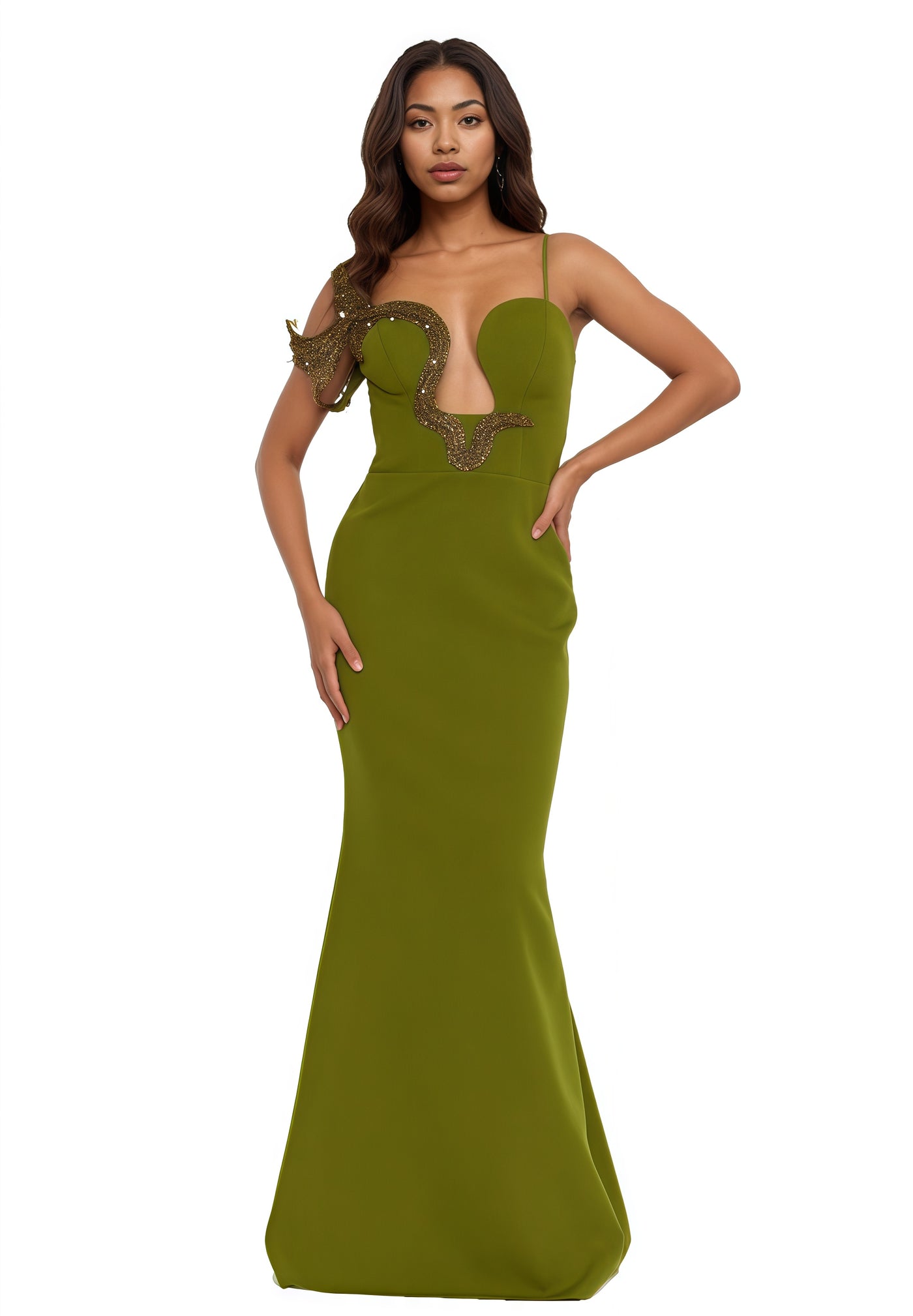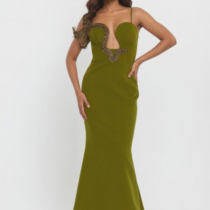 One Shoulder Maxi Viscose Mermaid Dress - Olive Green / XS