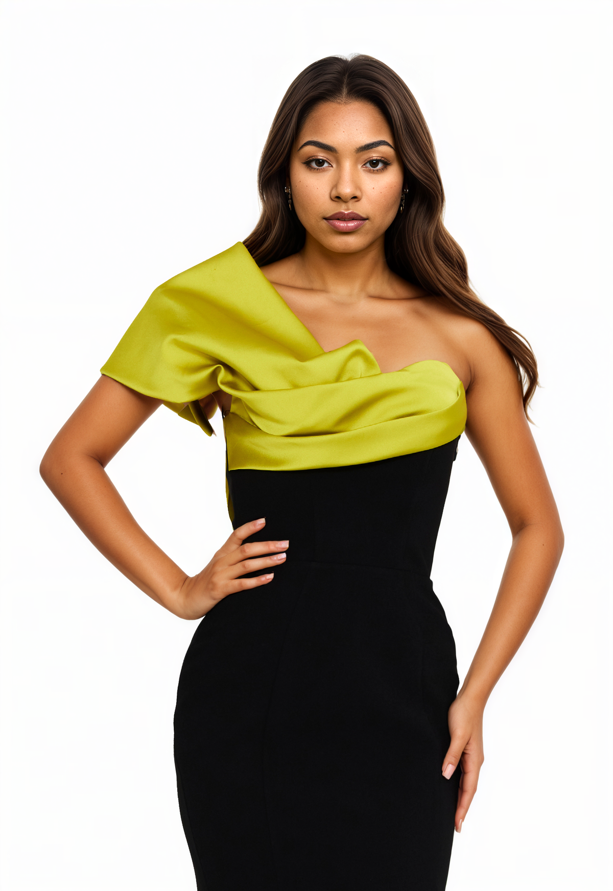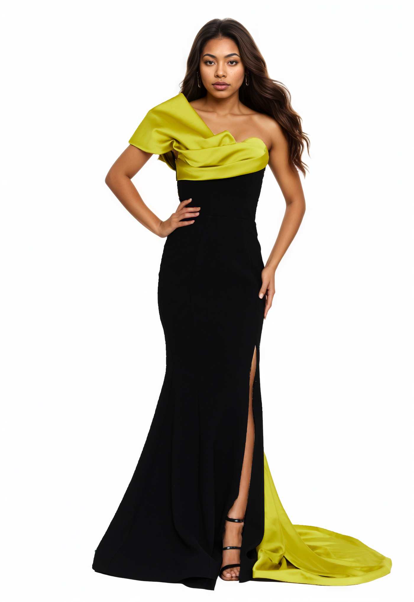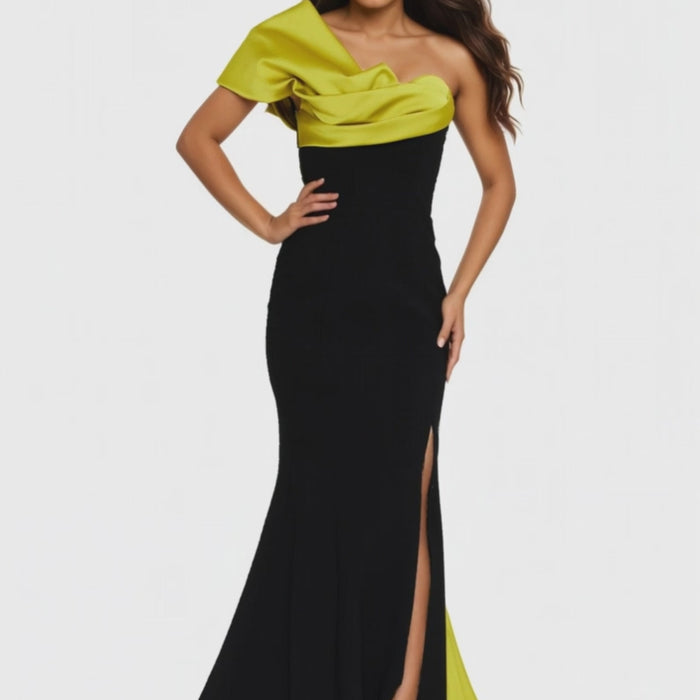 One Shoulder Maxi Viscose Mermaid Dress - Black-Olive Green / XS