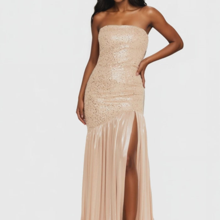 Strapless Maxi Lycra Column Dress - Gold / XS